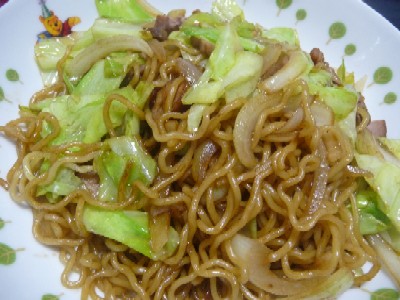 焼きそば:464kcal (焼きそば、煮豚、キャベツ、玉ねぎ、サラダ油、青海苔、紅しょうが)
