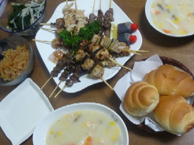 (ねぎま:60kcal 皮:150kcal 砂肝:64kcal 軟骨:36kcal レバー:46kcal つくね:64kcal)