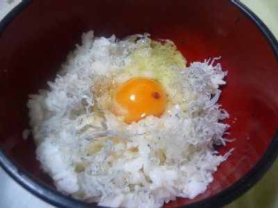 たまごかけごはん:397kcal (ごはん180g、たまご、ちりめんじゃこ、ポン酢)