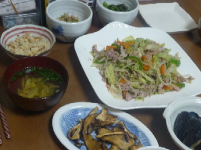 豚小間と野菜の炒め物:340kcal