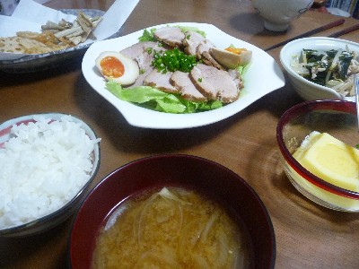 煮豚:180kcal (豚もも肉、調味料、レタス、小ねぎ)