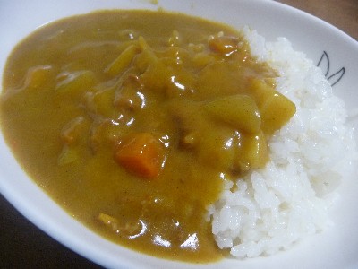 (ごはん220g、銀座ろくさん亭 六三郎のまかないカレー〔194kcal〕、ソース、七味唐辛子)