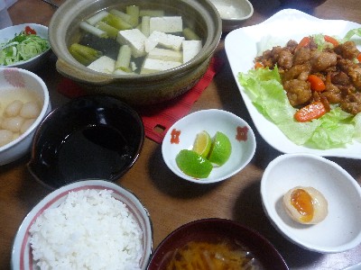 湯豆腐:120kcal (木綿豆腐、長ねぎ、ポン酢、かぼす、七味唐辛子)