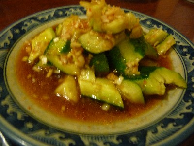 これでもか!ってくらい、きゅうり。たたききゅうりがネギ入りの中華風のたれで和えてあります。