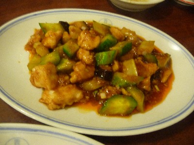 鳥肉とセロリ等の四川辛味炒め