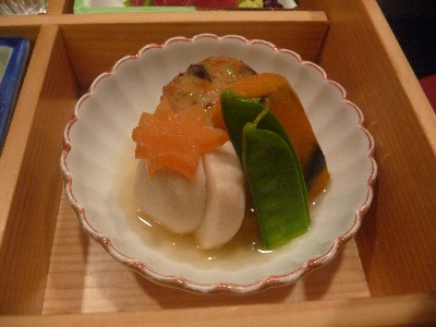 さといも、がんもどき、かぼちゃ、にんじん、絹さや。