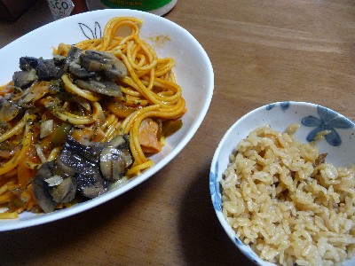 ナポリタン+マッシュルームのガーリックソテー:740kcal