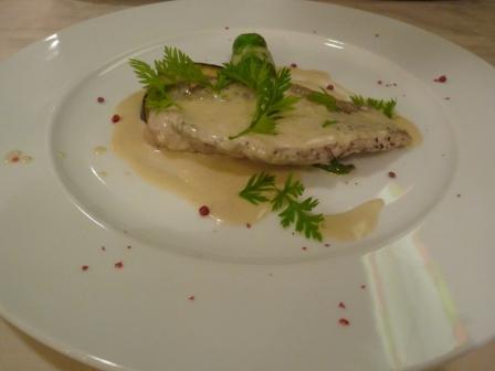 クリームソースがかかっていて、横にはソテーした茄子としし唐が添えられてた。