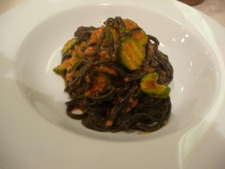 <本日のパスタ>イカ墨入り マロレディウスの海の幸ラグーソース和え:664kcal