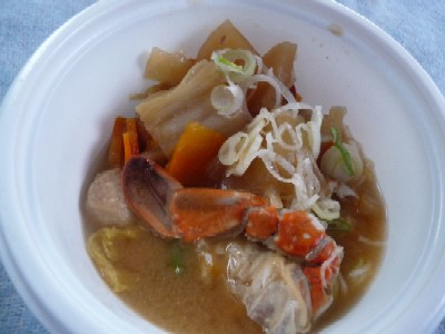 かに、鶏団子、大根、にんじん、白菜、長ねぎ、味噌