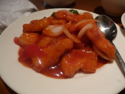 揚げたばら肉に絡むソースは濃厚・・・というより、酢w