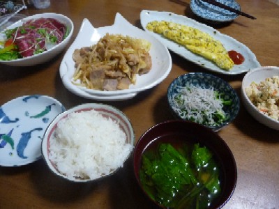 豚の味噌漬けともやし、キャベツの炒め物:346kcal