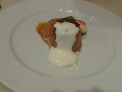 ⑤魚料理 サーモンの生ハム巻き マスカルポーネのソース