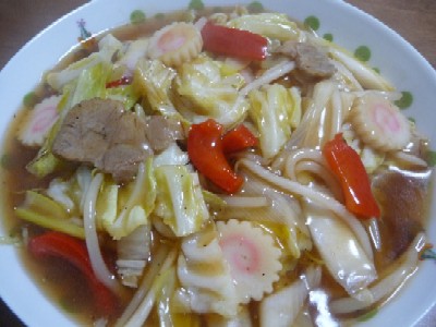 (あんかけ焼きそば:295kcal、煮豚、なると、白菜、キャベツ、もやし、パプリカ、長ねぎ、サラダ油、片栗粉)