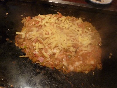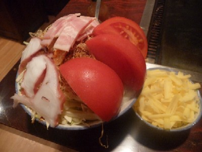 最後はもんじゃで終わりたい・・・と思っていたので、お好み焼きの具は比較的軽そうなものをチョイス