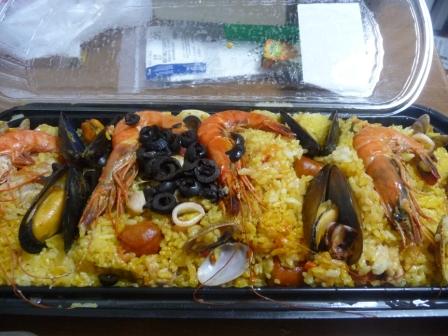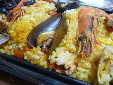 サフランライス / オイル / 海老1尾 / ムール貝 2つ / あさり 3つ / ヤリイカ