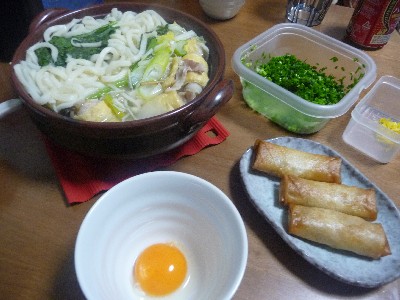 (うどん、卵黄、ポン酢、小ねぎ、唐辛子、ゆずの皮、