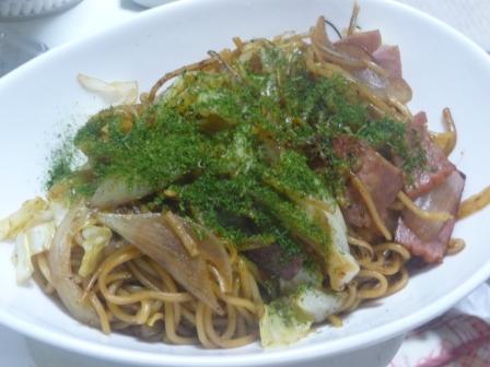 ショルダーベーコンにサラダ油小さじ1杯、かなりヘルシーな焼そば。