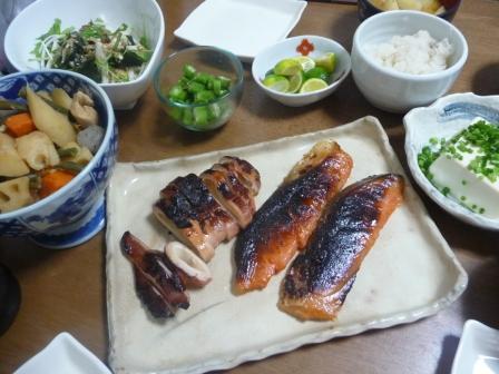 (鮭の粕漬け:175kcal いかの粕漬け90kcal 大根おろし:20kcal)
