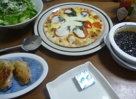 ピザとリゾットはインスタントではありますが、鶏を焼いて、サラダもつけて、いたりあーん!