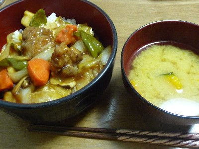 酢豚丼:812kcal(ごはん280g、酢豚〔酢豚@中華菜館、玉ねぎ、エリンギ、ピーマン、油〕)