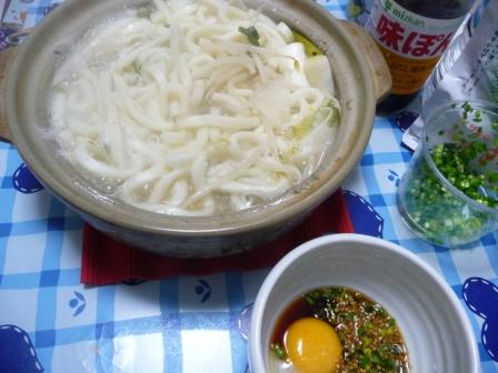 昨日の鶏鍋に玉うどん(2玉)を入れて、2人でつついた。