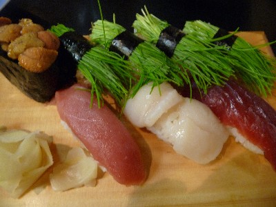 寿司(うに、芽ねぎ、まぐろ、ほたて、中トロ)