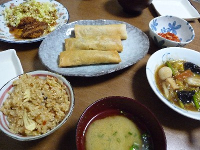 鶏とたけのこの炊き込みごはん:360kcal