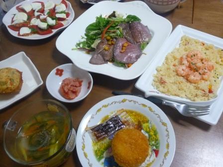 カプレーゼは家にあったトマト・モッツアレラ・バジルで。
