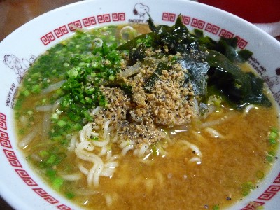 (サッポロ一番みそ、もやしのみそ汁、キャベツ、わかめ、小ねぎ、酢、こしょう)