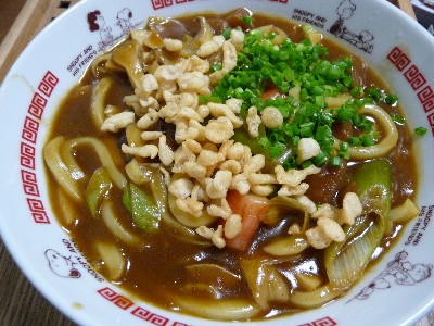 (玉うどん〔230kcal〕、カリー屋カレー〔大辛/174kcal〕、かにかま、長ねぎ、エリンギ、