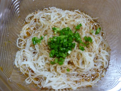 冷し中華@西友&そうめん:598kcal(冷し中華、ラー油、酢、そうめん、すりごま、小ねぎ)