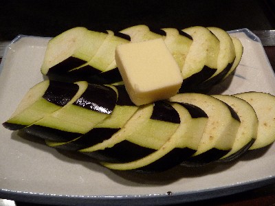 バター焼きのサービス券で『なすバター』(げそ・きのこ・なすの中から1品)と『明太もんじゃ』を注文。
