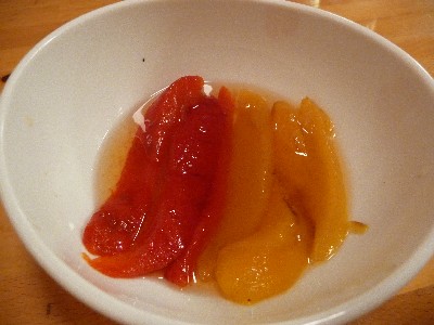 新メニュー。焼いて皮を剥いたパプリカを甘酢につけたもの。
