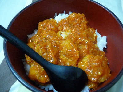 エビチリ丼:611kcal(ごはん、エビのチリソース@西友)