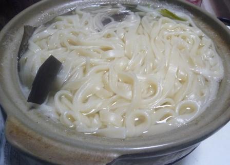 たらちりのだし(たら&野菜も残ってた)に半生きしめんを入れて。
