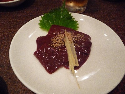『レバ刺し』が不揃いなのと、大根のつまなどがついていないですが・・・味に遜色なし。