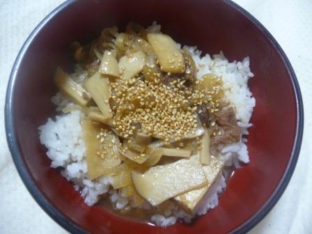 4.器にごはんを盛って、(3)を乗せて完成。 仕上げにゴマ。