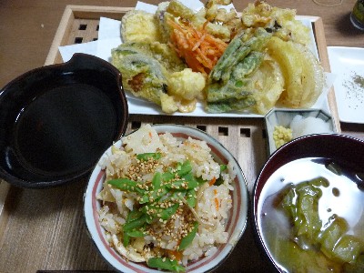 ピーマン、長芋と長ねぎとエリンギのかき揚げ)