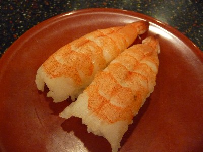 いつものやつ。秋五貫握りを待つ間にレーンから。