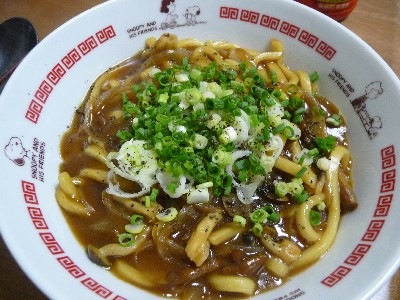 (玉うどん〔214kcal〕、カレールー、玉ねぎ、しめじ、くりたけ?、小ねぎ、めんつゆ、だし、片栗粉)