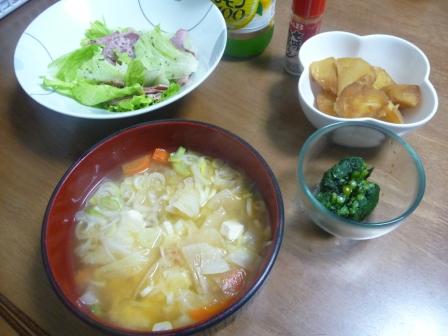 明日の外来に備えて、具だくさんのみそ汁を作ってもらう。