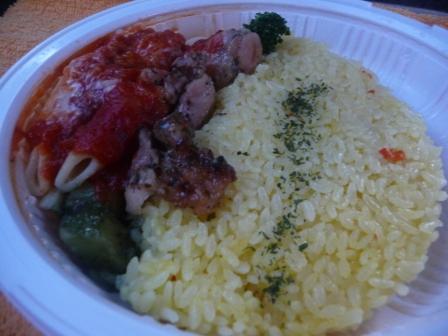 トマトソースのチキン&ペンネの下に隠れたジェノバソースのポテトが心憎い(も少し欲しいwww)