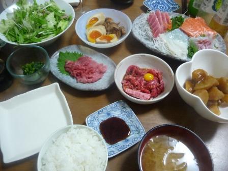 箸は止まらず、刺身とユッケをどんどんとつまむ。