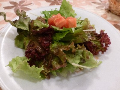 レタス、サニーレタス、トマト。シンプルなドレッシング。
