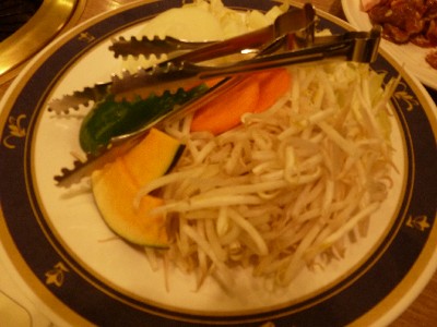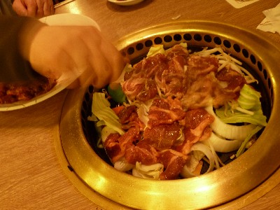 鉄板に肉を直に乗せて、上からキャベツともやしを乗せて、肉に火が通ったら混ぜ混ぜ・・・