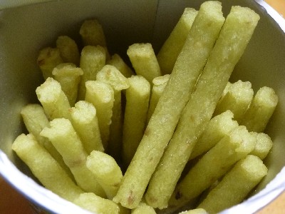 アボカドのペーストとつぶつぶを練り込んだ、じゃがりこ初の緑色のスティックです。