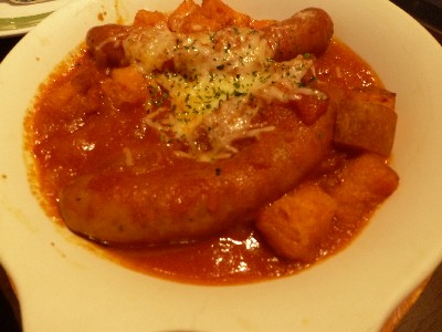 ソーセージもパンもトマトソースをよく吸ってた。パンが欲しくなる(笑)