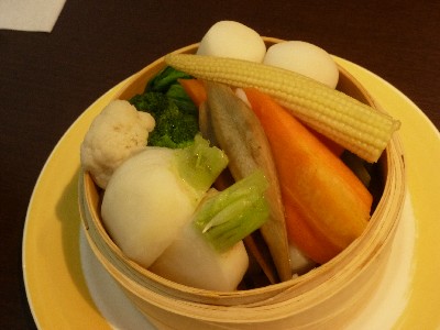 サラダが運ばれてから「野菜メニュー追加する?」ってことで野菜のセイロ蒸し、