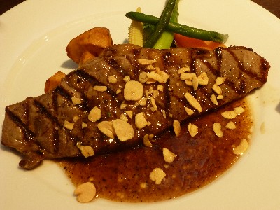 ミディアムレア~ミディアムの中間くらい? 思ったほど肉も硬くなく美味しかった。